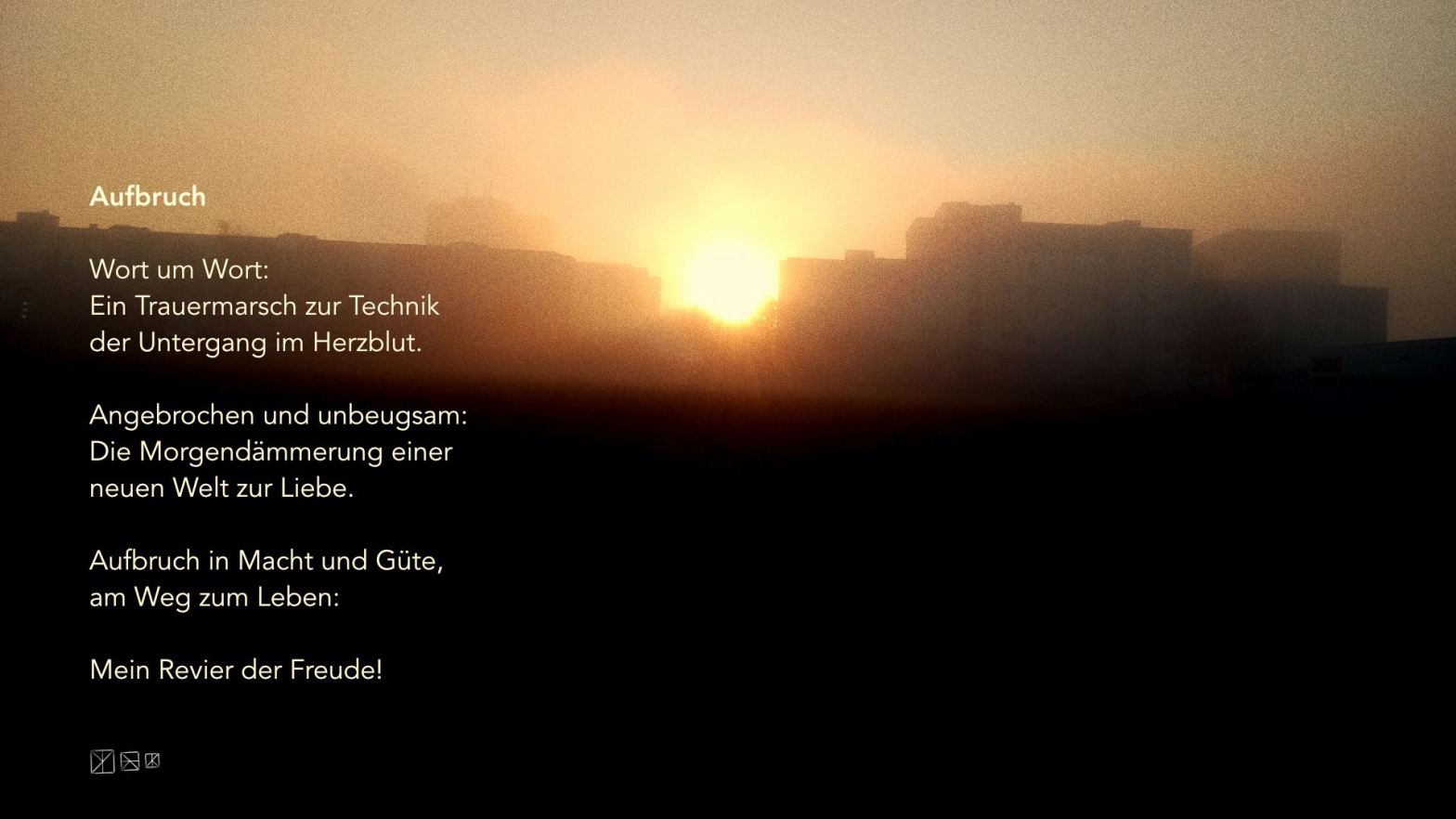 Aufbruch Verfasst vonmkzopf14. April 202324. September 2025Veröffentlicht inAllgemein, SPRACH-ARBEITENSchlagwörter:Poesie Autor: Martin Konrad Zopf [mkz] Teilen mit: Klick, um auf Pinterest zu teilen (Wird in neuem Fenster geöffnet) Pinterest Klicken, um einem Freund einen Link per E-Mail zu senden (Wird in neuem Fenster geöffnet) E-Mail Klicken zum Ausdrucken (Wird in neuem Fenster geöffnet) Drucken Ähnliche Beiträge Veröffentlicht von mkzopf LEBENS·RAUM/gestalter · Freier Autor, Texter & Sprachkünstler · Philosoph & Musiker Mehr Beiträge anzeigen